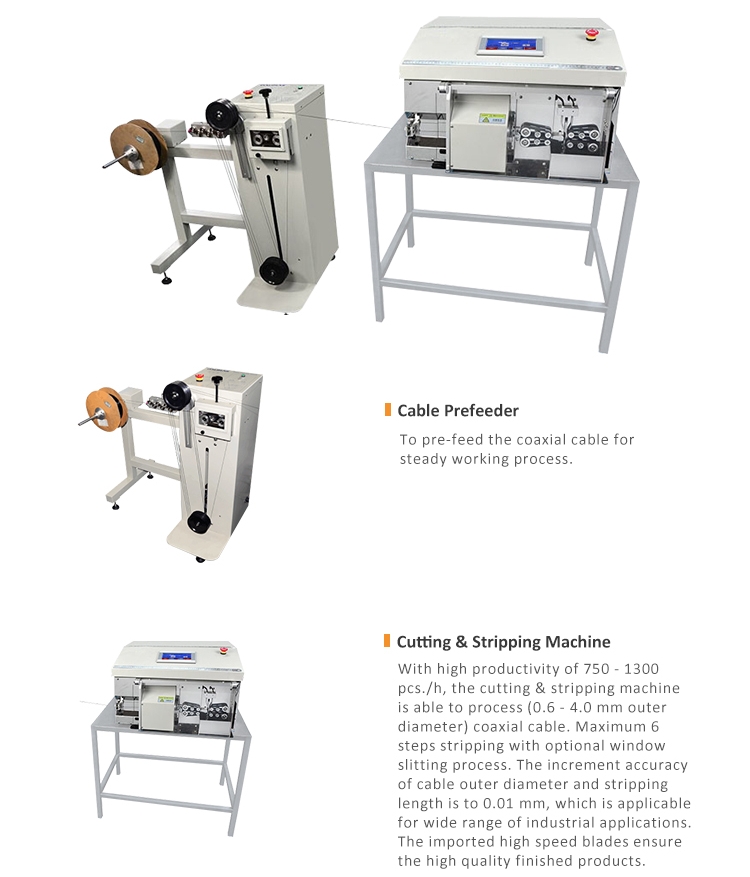 The company's main products are a fully automatic plug crimping machine, fully automatic wire tinning machine series, fully automatic wire winding machine series, semi-auto terminal crimping machine, automatic cutting machine, automatic coaxial wire stripping machine. Provide safer, labor-saving, efficient, and high-quality equipment for the power cord production, wire harness end processing industry.